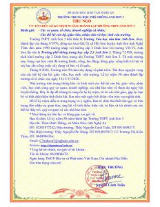Nguyễn Cảnh Tuấn says: Kính mong các thế hệ giáo viên và học sinh qua các thời kỳ hướng về trường THPT Anh Sơn 3 nhân kỷ niệm 50 năm ngày thành lập( 1976-2026) với những kỹ niệm tốt đẹp nhất! 1010/0303/26262626 at 10:26 sáng Bình luận